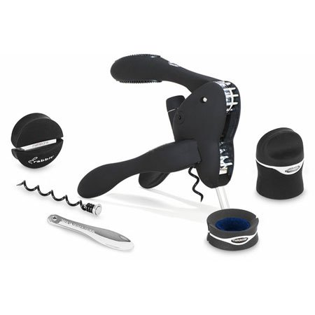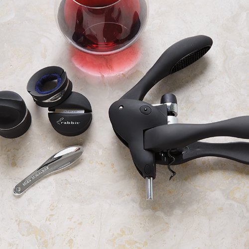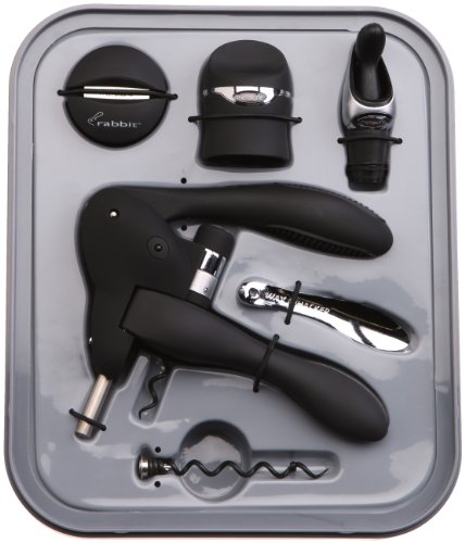 Product Description Reproduce flawless openings with multiple tools. The ultimate all-in-one wine corkscrew set for all your wine service needs. You get everything you need for wine bottle opening and service in this convenient and affordable Rabbit Corkscrew set from Metrokane. The 6-piece corkscrew kit includes the world-famous Rabbit Corkscrew, foil cutter, drip-stop drip ring, worm, wine/champagne sealer, and wax remover. The Rabbit Corkscrew was redesigned with an all new precision metal gear mechanism for even smoother and more reliable wine bottle opening. This corkscrew is synthetic cork friendly.