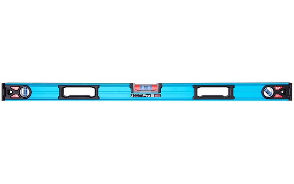 ●クリアブルーの溶液とホワイトラインで視認性の高い気泡管を採用しました。基準線が左右に3本ずつあり、水平と1/50・1/100勾配測定ができます。