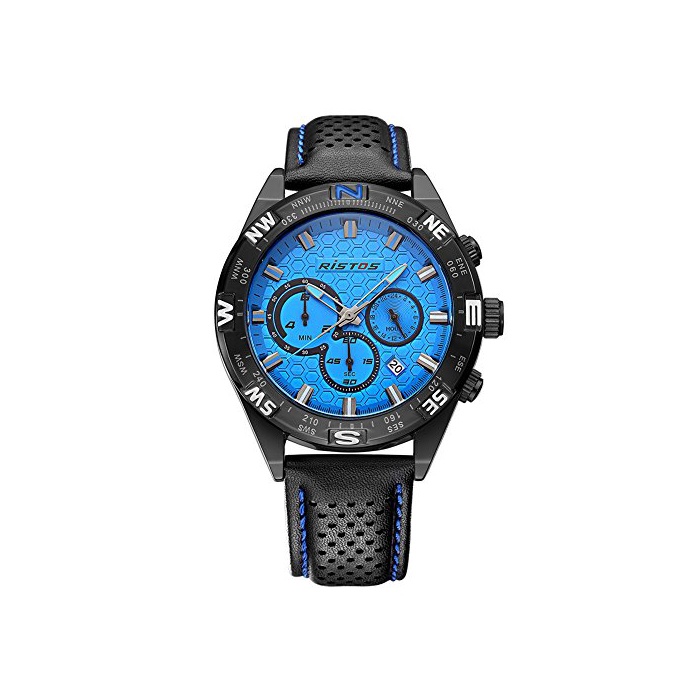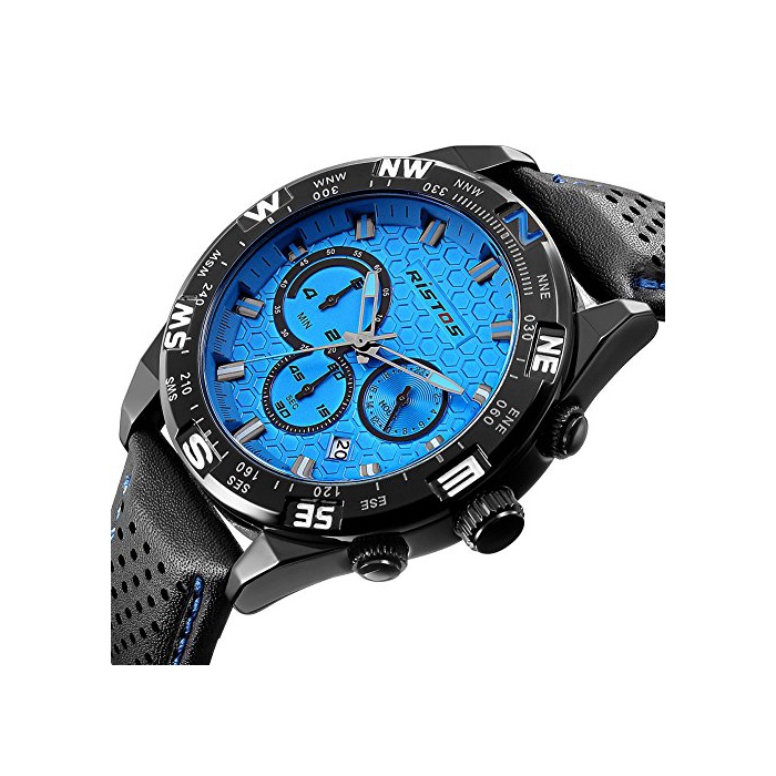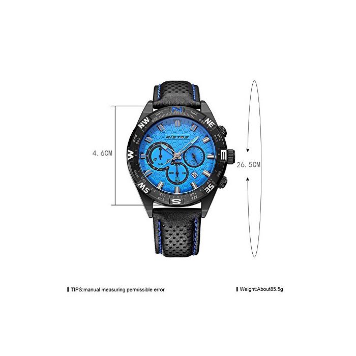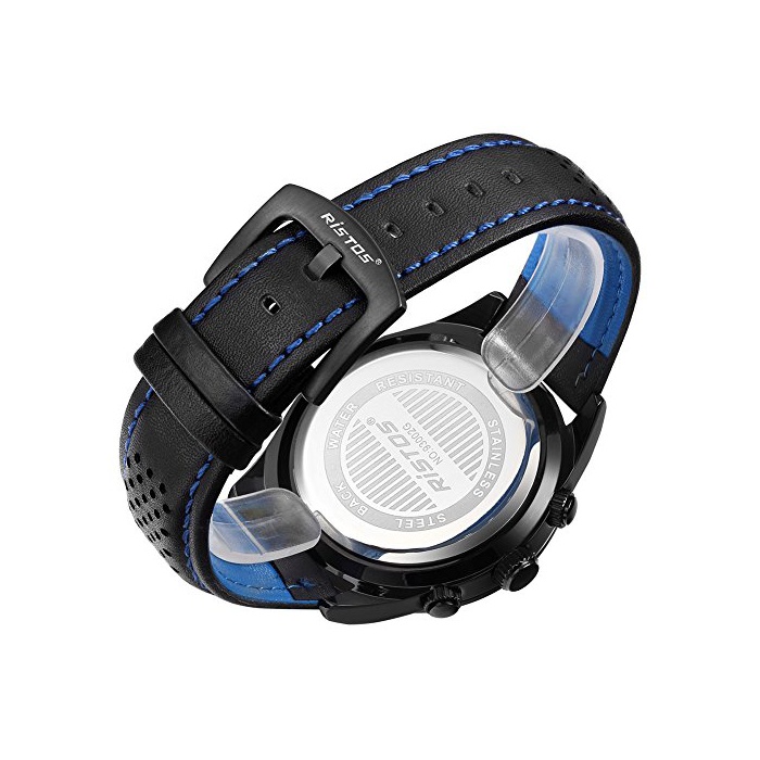 RISTOS Rockyu 감정 브랜드 인기 손목시계 맨즈 레이디스 스포츠 워치 30M 방수 내구 캘린더 야행 스포티 사파이어 유리 블랙 레더 가죽 밴드 [병행수입품]