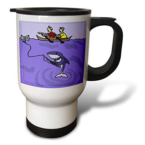 3dRose tm_216350_1 Funny Shark Fishing for Humans Cartoon Travel Mug, 14 oz, White