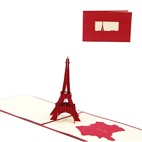 -. Title : Julyshop Paris Eiffel Tower Pop up 3D Greeting Cards for Mother's Day Father's Day Birthday Wedding or Other Occasions,with Red Envelope Laser Cut Handmade Kirigami Papercraft Gift