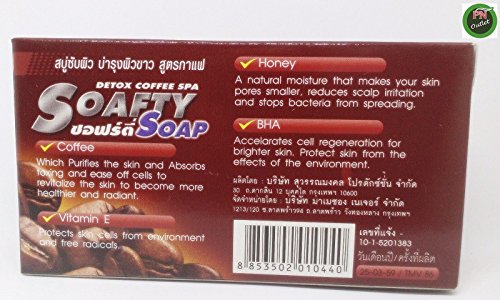 SOAFTY SOAP DETOX COFFEE SPA BRIGHTENING WHITENING HEALTHY SKIN 110G BAR WITH COFFEE, HONEY, BHA, VITAMIN E AND MOISTURIZER