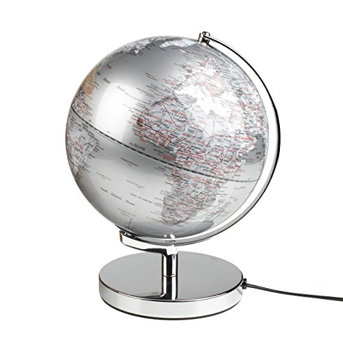 Product Description This stylish silver globe lights up to create a beautiful cream colored ambient light. PROVIDES a nice ambient light that is perfect for a bedside table. 0
