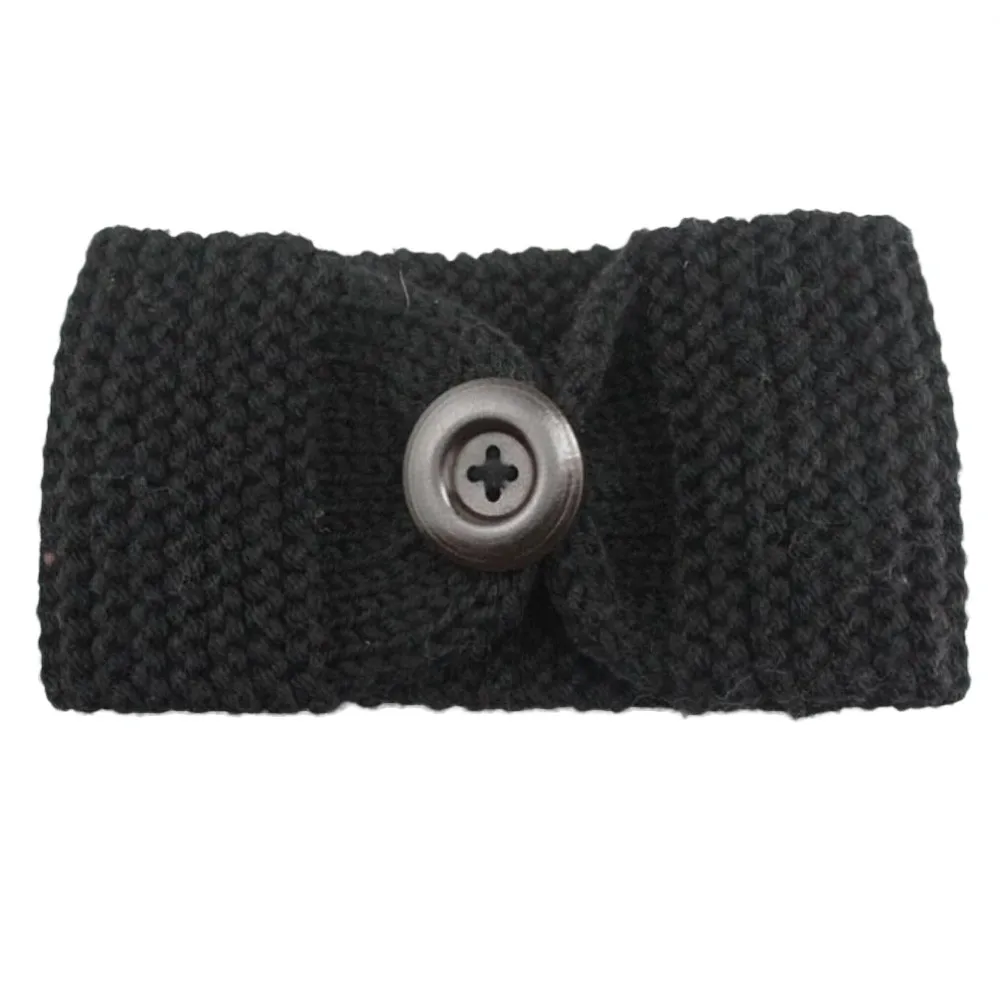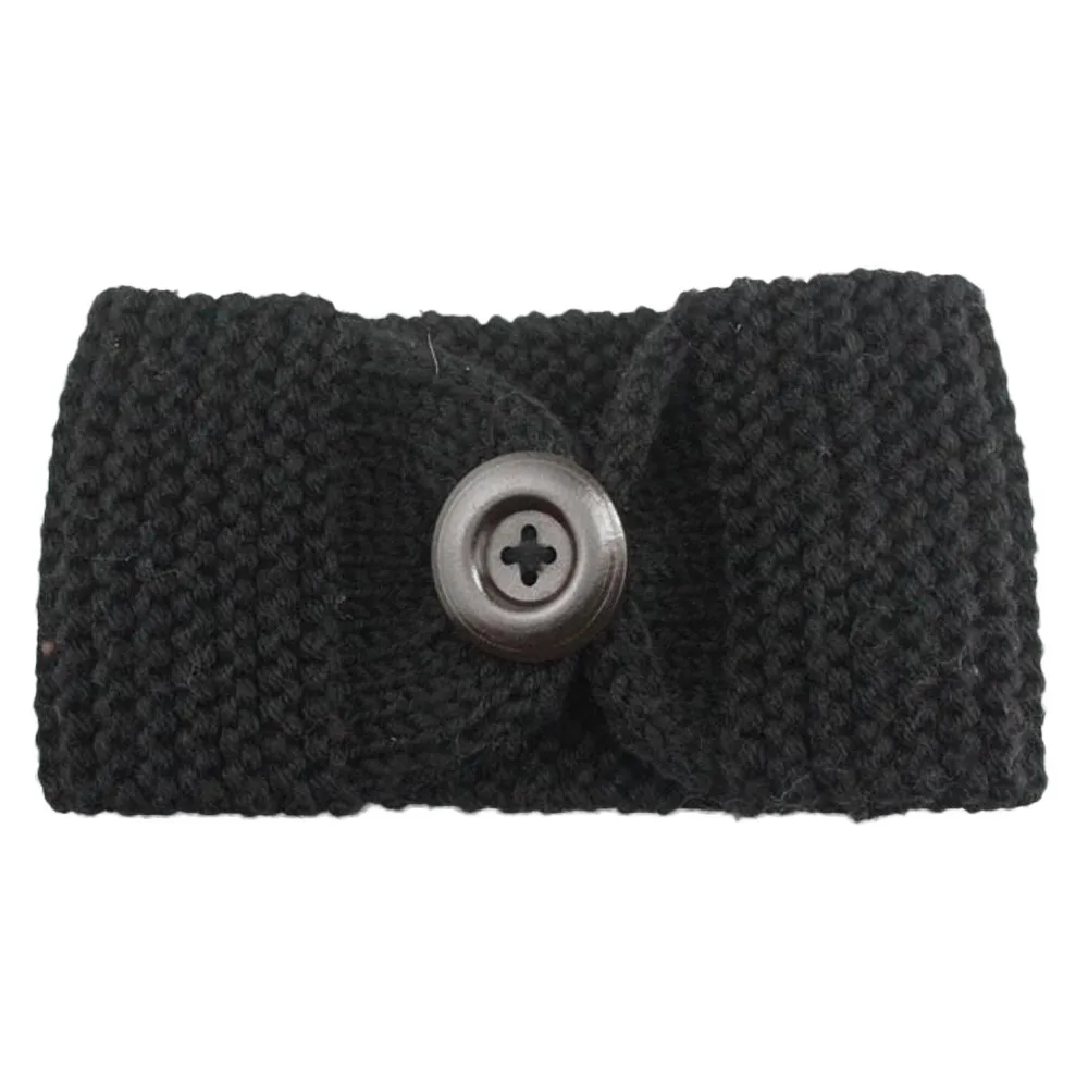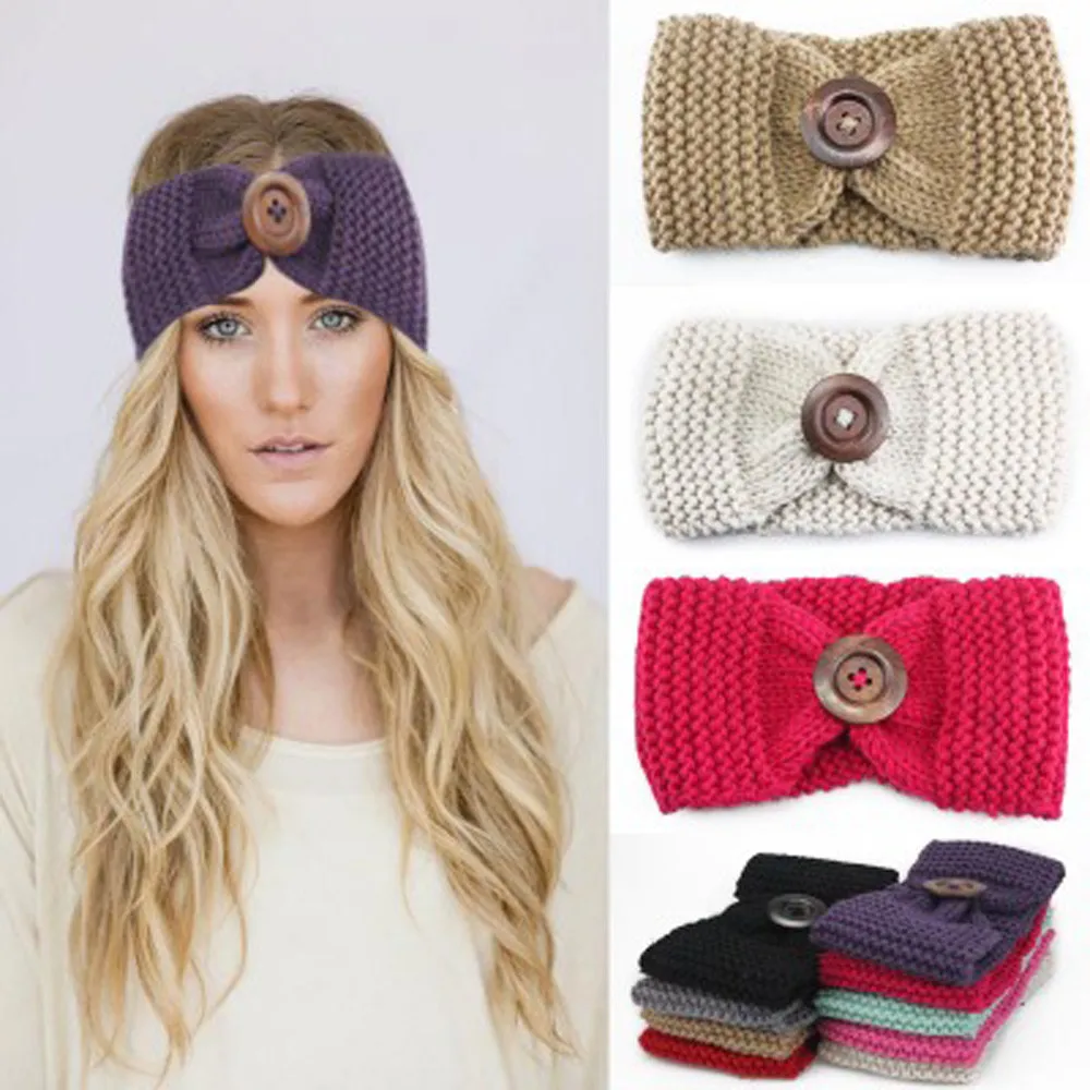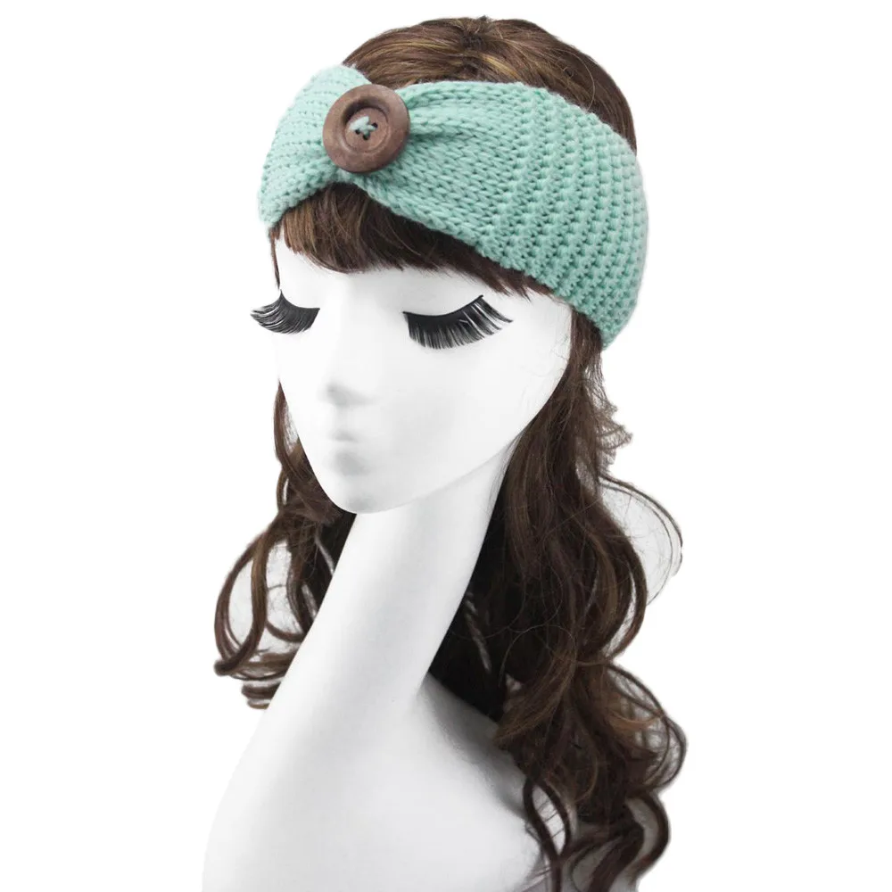 Women Knitted Headband :Crochet Bow Button Stretch Knit Hairband