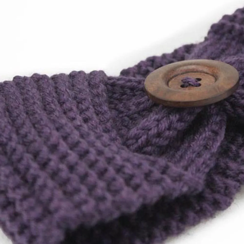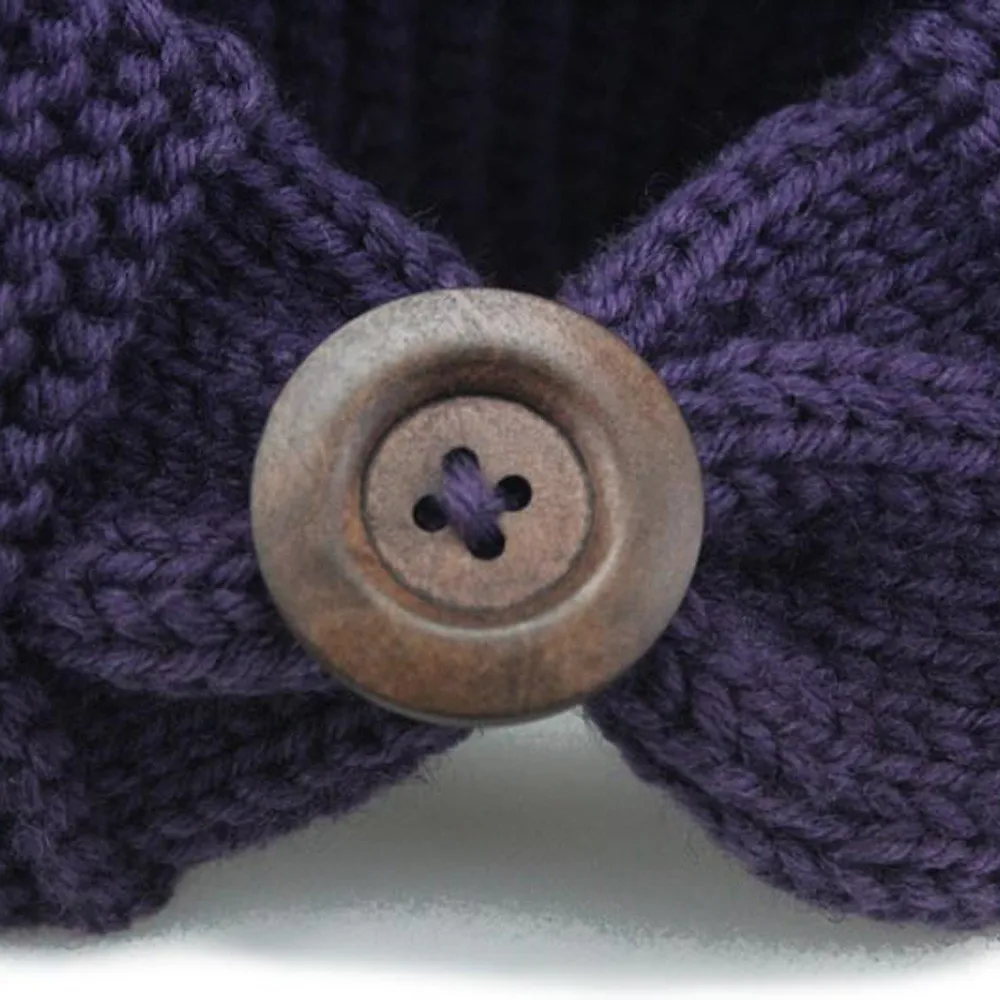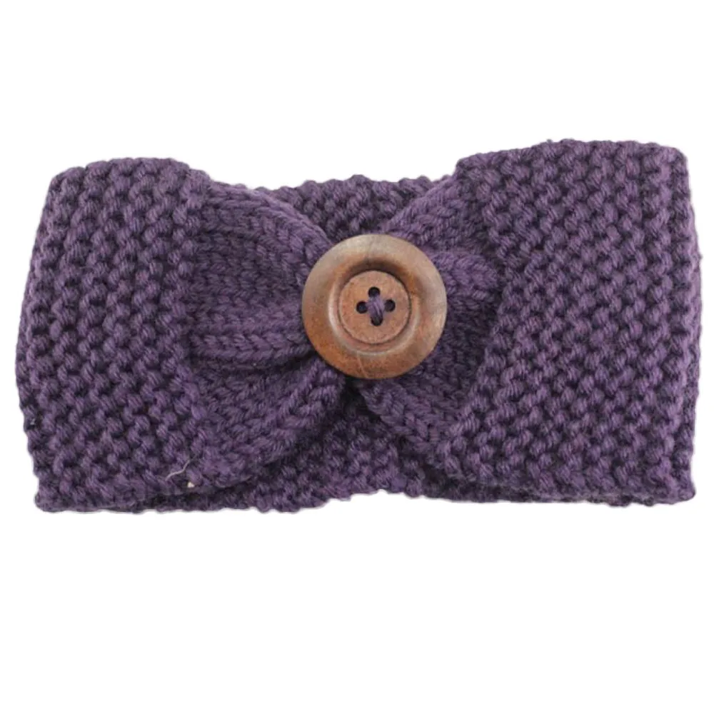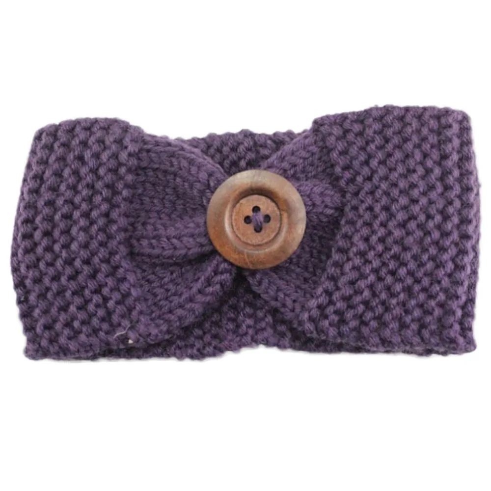 Knitted Headband:Lady Women Crochet Bow Button Headband