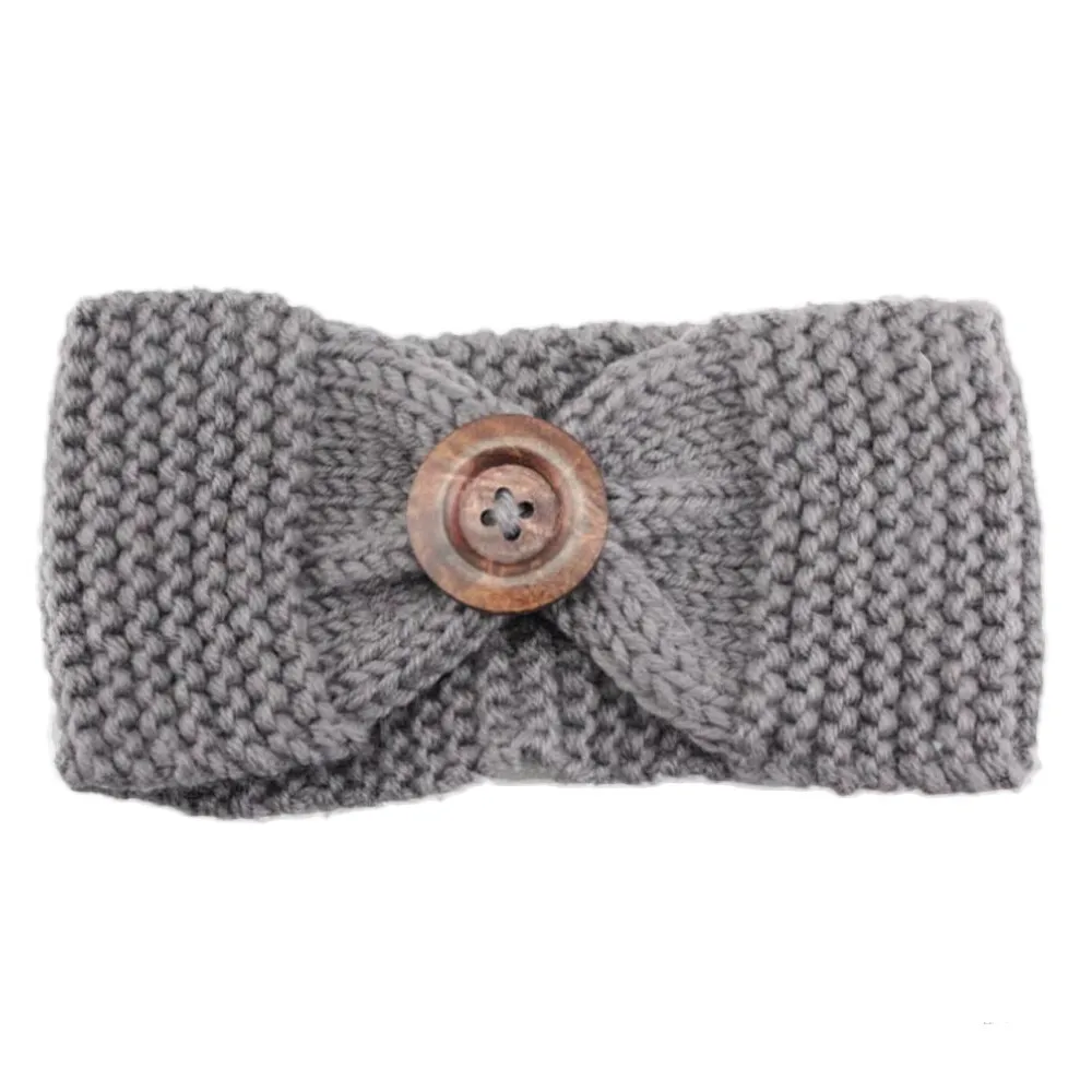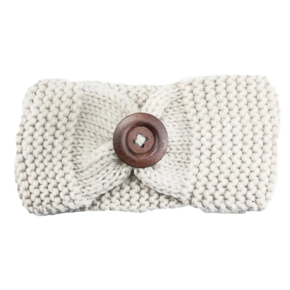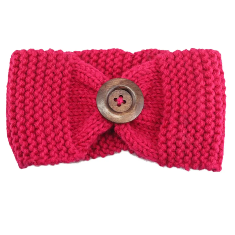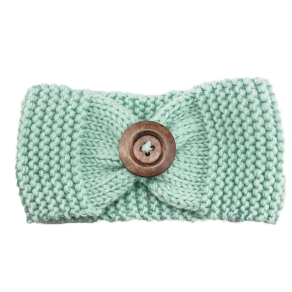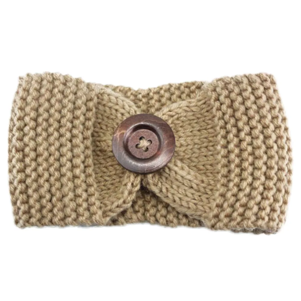 Knitted Headband:Lady Women Crochet Bow Button Headband