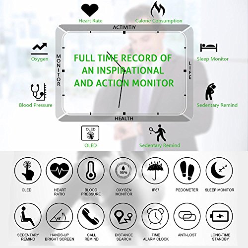 -. Feature : High Performance --- X9 Plus Made of high quality soft silicone band and All-alloy case with 0.95" OLED Large Touch Screen.High grade IP67 Waterproof,it can be weared to swim or dive(the depth not over 1m, time not over 30mins).Built-in 100 mAh Polymer lithium battery with long standby time. / Blood Pressure and Oxygen Monitor --- Upgraded blood pressure and blood oxygen function,Detect your blood pressure and blood oxygen condition. With dynamic and static measurement,it can help you control your blood pressure and blood oxygen ,so that you can keep the body to relax and rest. / Upgrade Heart Rate Monitor --- With the upgrade version smart optical chip,24-hour dynamic heart rate detection, automatic accurate measurement of your heart rate. Synchronize to your App and record your 24-hour heart rate changes.Keep your knowing your heart-rate all day and during workouts. / Sleep Monitoring --- Sleep Analysis. Monitor your sleeping time and quality, discover your sleeping patterns, wake up peacefully with the silent, vibrating alert,make you have a better understanding of the effects of sleep. / Multi-Function --- Blood Pressure and Blood Oxygen Monitor,Heart Rate Monitor,Pedometer,Sleep Monitor,Calorie Counter,Distance Track,SMS Reminding,Call Reminder,Sedentary Reminder,Calendar,Alarm Clock,Time Display,Anti-lost,Wrist Sense,etc.