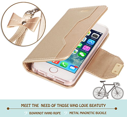 -. Title : iPhone SE Case, Fyy Premium PU Leather Wallet Case with Cosmetic Mirror and Bow-knot Strap for Apple iPhone SE / 5S / 5
