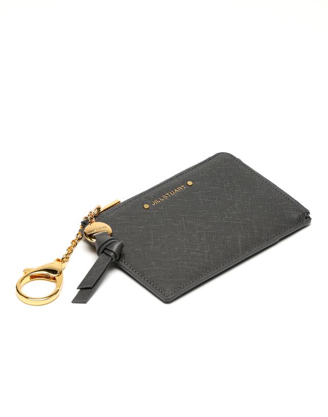 심플한 소가죽 바탕에 골드 로고와 참 장식으로 포인트를 준 동전지갑 형 카드지갑 입니다.