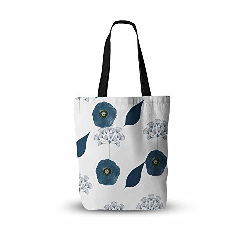 KESS InHouse Li Zamperini "Blue Collection - Lili" Blue Floral Watercolor Everything Tote Bag, 13" x 13", Multicolor