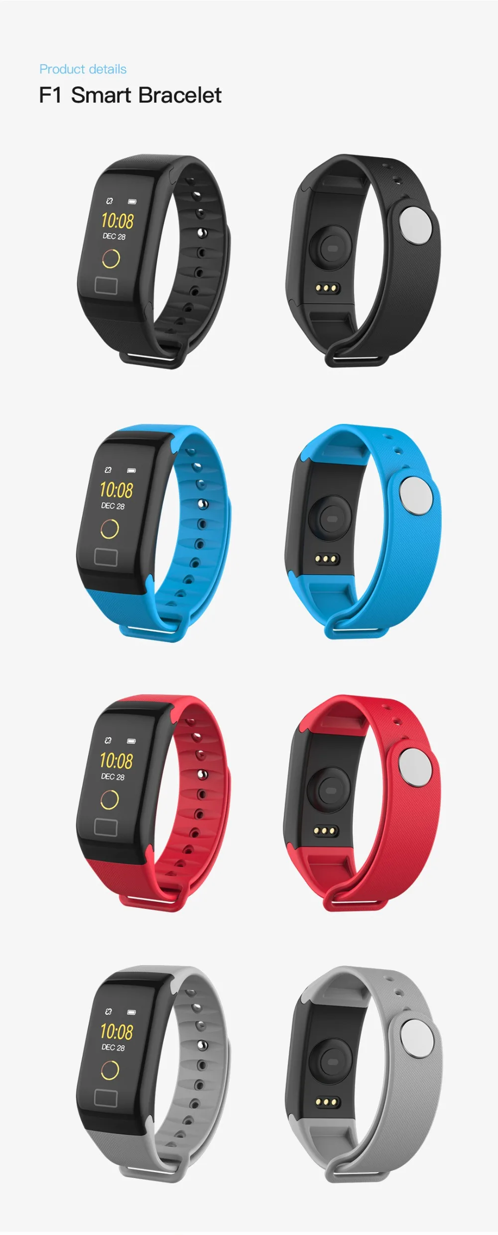 Function:Blood Pressure,Passometer,Sleep Tracker,Fitness Tracker,Heart Rate Tracker,Alarm Clock,Message Reminder,Call Reminder