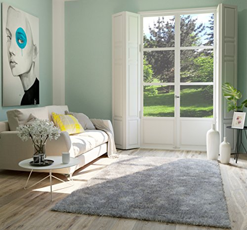 Super thick silver (gray, grey) shag area rug features 2-inch-deep pile for extra cushion and softness. Shaggy flokati rug has a mix of two types of polyester fiber and gives an exceptional look as well as silky soft feel. Short, twisted yarn provides softness while long, thin yarn gives a shiny look. The soft, thick pile of the gray super thick shag area rug has the comfortable feel. Our machine-crafted shaggy carpet has a cozy warm feeling, while its strength makes it a great choice for any room: living room, bedroom, office, family room, dining room, studio, nursery or playroom. Machine-made construction of the rug holds each strand tightly in place for years. The modern gray shag area rug will suit casual, contemporary, and modern settings. This shaggy area rug is made from 100% machine made polyester that enhances its strength and durability. Choose from the assortment of rug sizes and colors. Enjoy the plushness of this grey silver flokati area rug from our shaggy collection in your home.Feature