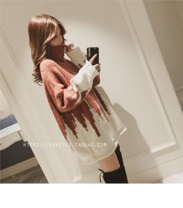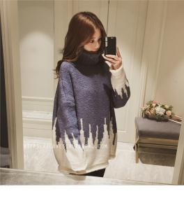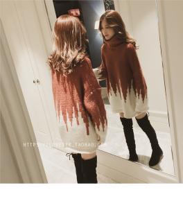 バイカラーニット セーター ハイネック タートルネック 長袖 ニットプルオーバー ゆったり プチプラセール 秋冬