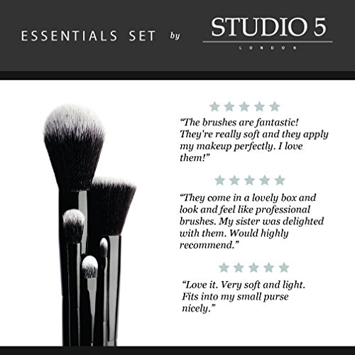 - Feature : Set includes 1) Powder Brush, 2) Foundation Brush, 3) Eye-shadow Brush, 4) Blending Brush, 5) Lip Brush. / Premium soft and silky synthetic bristles - essential for a streak-free, flawless finish. / Perfectly shaped brushes for precision applications. All brushes labelled for ease of use. / Studio 5 synthetic brushes are easy-to-clean and are 100% cruelty-free. / BUY WITH CONFIDENCE: 100% of your money back if you are unhappy with this brush (we're pretty confident you will love it!) 30-Day Studio 5 Online Purchase Guarantee.