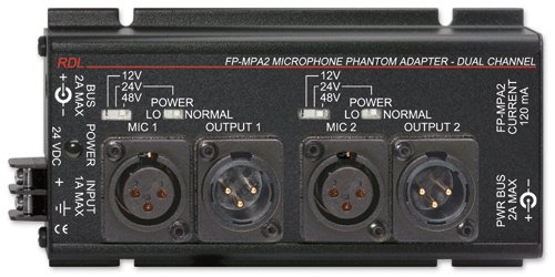 Studio : RDL Publisher : RDL Product Description The FPMPA2 is the ideal choice in any applications where phantom power needs to be provided to powered microphones.ppTwo identical circuits are provided, with connections through XLR jacks. The microphone is connected to the module through the female XLR jack. The selected phantom voltage is applied to this jack. The microphone signal output is available on a male XLR. Phantom is blocked from this output jack. The phantom voltage is individually selectable for each input. A three position switch is provided for choosing 12 Vdc, 24 Vdc or 48 Vdc. Some microphones operating on 24 Vdc phantom perform optimally with higher value buildout resistances. For these particular 24 Vdc powered microphones, a second switch is provided to select the optimum current. The appropriate voltages are generated through a lownoise dcdc converter and regulator circuits. Each phantom output is shortcircuit protected. The FPMPA2s low profile and compact size permit mounting in confined spaces and in various locations in equipment racks. The location of the inputoutput jacks permits highdensity mounting against flat surfaces while maintaining accessibility to the connectors. Installations requiring multiple FPMPA2s are ideally designed using FPMPA2s affixed to rack sides, or by mounting them to either the front or rear rack rails using the RDL FPRRA. - Power Supply Included 0