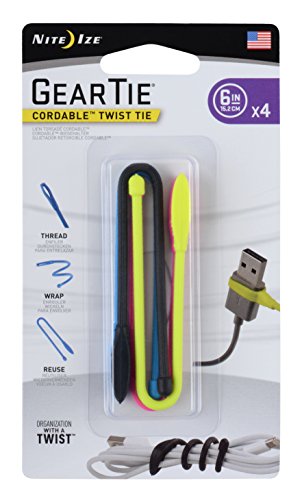 Nite Ize Gear Tie Cordable Twist Tie 3" - 4 Pack - Assorted
