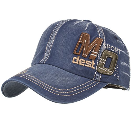 -. Feature : SUITABLE FOR EACH OCCASION: No reason exists to refuse wearing of this denim ball cap for men. It is stylish, looks expressive, high quality / ALL COLOURS FOR YOUR IMAGE: For spectacular, handsome and fashionable look choose these mens trucker hats. Wear it daily or make a good gift for your friend. Very manful colours making one become the focus of interest / GOOD QUALITY FABRIC : Mens denim sport cap is made of high quality material. The fabric is embroidered with letters M and O and words SPORT and DEST that look awesome. This is very comfortable to wear. Designed with these eyelets to let the fresh air pass through your head and care your skin and hair / FITS PERFECTLY: It is quite adjustable and fits almost all men. It is designed with an adjustable strap on the back / FEEL TRENDY AT ANY AGE: Breathable baseball cap with wide brim that keeps your face, eyes, skin protected from the sun and dust. Expressive stitching will catch your eyes and make your look more trendy while wearing it