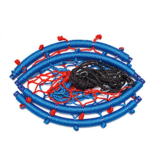 Crosslinks is proud to present this brand new 38 inch Web Swing. Swing your way into the season! This swing comes fully assembled and ready to be put up indoors or outdoors. The swing is made with a metal frame that is securely encased in hard plastic for the stability and safety of the user. Constructed from nylon ropes, this swing is resilient and resistant to all types of weather. The swings round shaped bottom is an updated design to traditional swings and provides a fun way to get your blood pumping. Bring this Web Swing to your next backyard party today. Collapsible design is convenient when going to the park, party, or relatives house and for storing during the rainy season. Clevr 38" Round Tire Spider Web Tree Net Swing, Blue Red | Detachable 360 Degree Spin Swivel Hanging Hardware Adjustable 71" Height Rope, 600 lbs. Limit