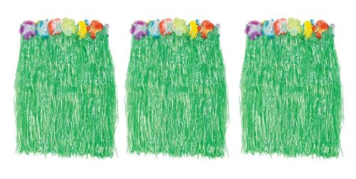 1 X Kid's Flowered Green Luau Hula Skirts (3 Pcs) w/Floral Waistbands