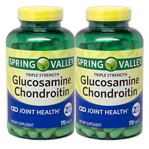 -. Brand : Spring Valley -. EAN : 0078742093192 -. Feature : Helps rebuild cartilage & lubricate joints. / Triple Strength. / 2 per day formula. / New! 20% Smaller, Easier-to-Swallow Pill. / Twin Pack - 2 Bottles of 170 Tablets Each. -. Label : International Vitamin Corporation -. LegalDisclaimer : The statements in this page have not been evaluated by the Food and Drug Administration. This product is not intended to diagnose, treat, cure or prevent any disease. -. Manufacturer : International Vitamin Corporation -. PackageQuantity : 1 -. ProductGroup : Health and Beauty -. ProductTypeName : MISC_OTHER -. Publisher : International Vitamin Corporation -. Studio : International Vitamin Corporation -. Title : Spring Valley - Glucosamine Chondroitin, Triple Strength, 340 Tablets, Twin Pack -. UPC : 078742093192