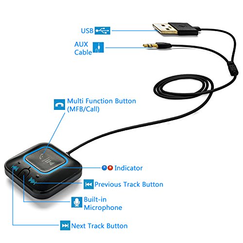 Broad Compatibility: Works with almost all Bluetooth devices and all cars with an AUX input. Supports two devices at the same time and supports AVRCP technology. Powered by any USB charger, support NFC pairing Just by placing it near to this receiver
