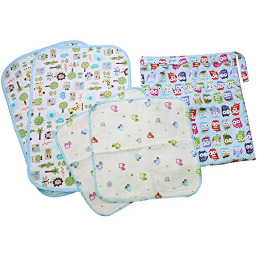 MyKazoe Baby Essentials Gift Set, Waterproof Wet Bag + 2 Waterproof Lap Pads + 2 Muslin Wipe Cloth - Set of 5 (Pink Owl)