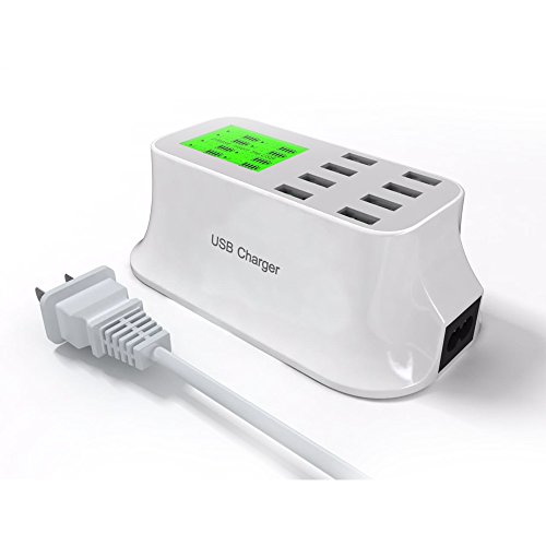 -. Feature : 8 Ports Fast Charging.8 USB power ports charge 8 mobile devices simultaneously through just one wall socket. Provide standard USB 5V at up to 8A (max). / Support smart charging, Max output up to 2.1A, built-in auto detect technology, which can automatically identify all kinds brand mobile phone / tablet, provide and output the best and fastest charging current. / Large Backlit LCD display to show the real time output current of each port, voltage and power. / Compatible with iPad, iPhones and iPod and other smart phones. / Suitable for home and travel use. Great for charging Cell phones, cameras, MP3 players.