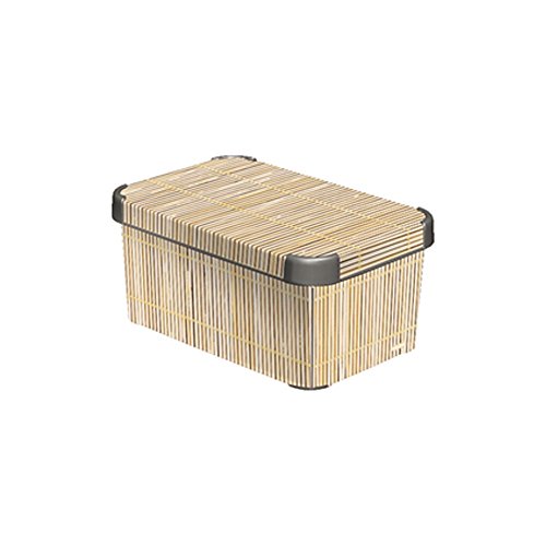 Curver Decorative Plastic Storage Box with Cover / Lid, STOCKHOLM Bamboo, 29.5x19.5x13.5cm, EF505240