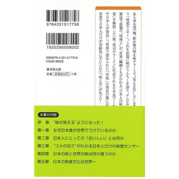 【商品基本情報】 商品名称:日本人の味覚は世界一-廣済堂新書 著者/出版社:鈴木 隆一/鈴木 隆一 初版発行日:2013/12/03 サイズ:新書判 ページ数:222 ISBN/JAN:9784331517758/4528189447479