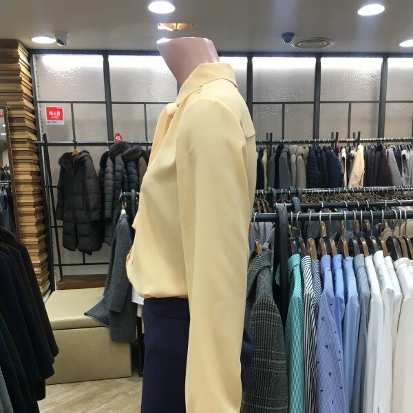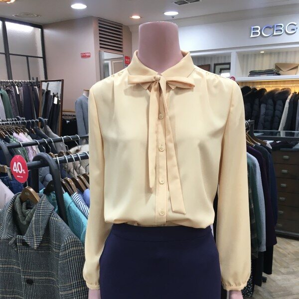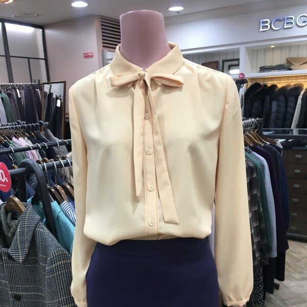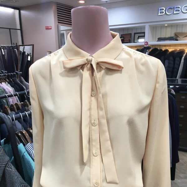 쉬폰 블라우스 입니다목선의 리본 포인트 디자인입니다베이지는 노란빛을 띄는 색입니다