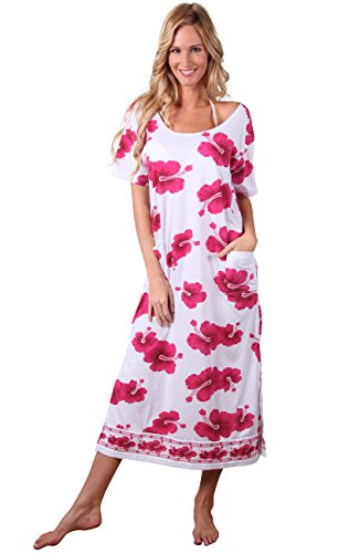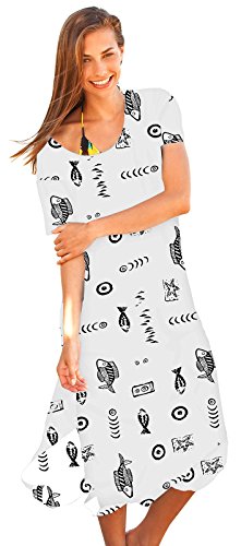 | Ingear Beach Dress Long Cotton Tee Dress (2Xlarge, Solid White) |