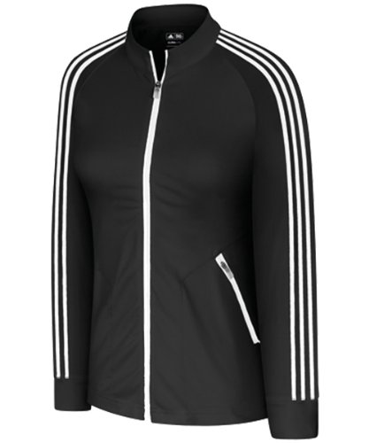 -. Feature : Self-mock neck / Two front zip pockets / 3-Stripes down both sleeves / Contrast brandmark at back neck yoke