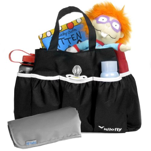 kilofly Diaper Bag Insert Organizer, Multiple Pockets, Black, + Diaper Changing Pad