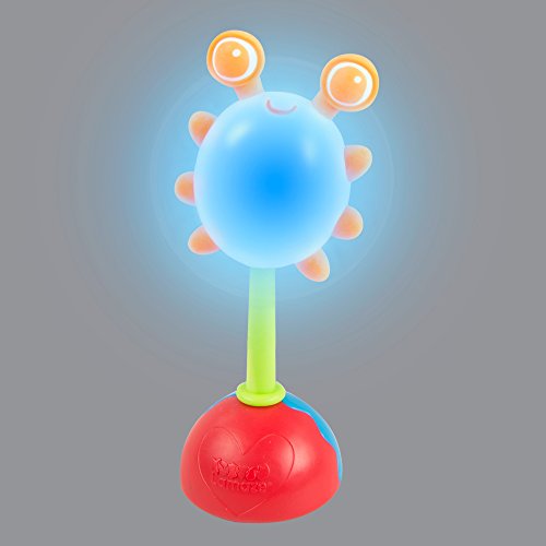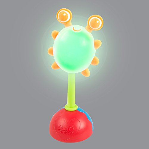 A happy baby is at the end of this rainbow! Specially designed for little hands, the Rainbow Glow Rattle features an easy-to-grasp handle with a happy little bug on the top that changes colors with a light shake. Watch in delight as the bug changes from blue to red to green! Featuring soft teething eyes and a twisting base, baby will quickly find a favorite toy in this rattle. Try it during the day or after dark for a mesmerising light show!Feature