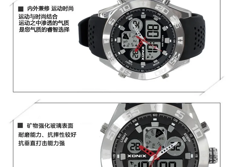 | [해외] XONIX 2016 년 새로운 경주 시리즈 복고풍 듀얼 디스플레이 LED 발광 방수 다기능 전자 남성 양식 제 |