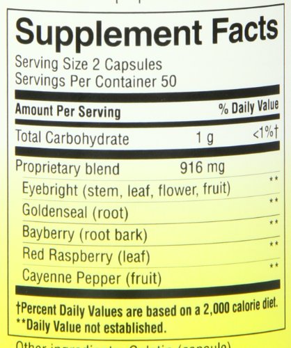 -. Binding : Health and Beauty -. Brand : Nature's Way -. Label : Nature's Way -. Manufacturer : Nature's Way -. ProductGroup : Health and Beauty -. ProductTypeName : HEALTH_PERSONAL_CARE -. Publisher : Nature's Way -. Studio : Nature's Way -. Title : Nature's Way Herbal Eyebright, 100 Capsule