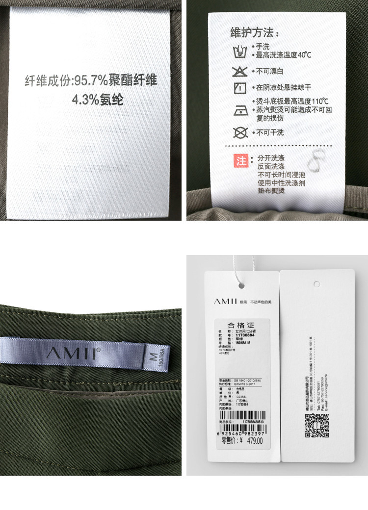 | 洗涤标准: | 40℃以下手洗110℃以下垫布熨烫不可漂白不可浸泡悬挂晾干不可干洗 |