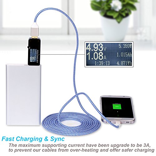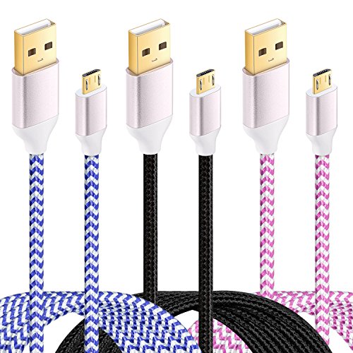 USB Cable, Eversame 3-Pack 10Ft 3M Premium Nylon Braided High Speed 2.0 USB to Micro USB Charging Cord Android Fast Charger for Samsung Galaxy S4, Note 4, LG V10 (Blue Black Pink)