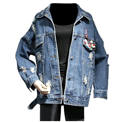 -. Title : Tootess Women's Slim Badge Destroyed Wild Denim Jean Bomber Jacket