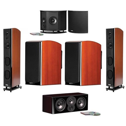 -. Feature : Polk Audio 2x LSiM705 47" Floorstanding Tower (Mount Vernon Cherry) - Polk Audio 2x LSiM703 Bookshelf Speaker (Mount Vernon Cherry) - Polk Audio 1x LSiM704c Center Channel Speaker (Midnight Mahogany) - Polk Audio 1x LSiM702 F/X Surround Speakers (Pair; Black Gloss) - Polk Audio 5 Year Limited Warranty / Dynamic Sonic Engine: Polk Audio's molded enclosure houses the super-accurate ring radiator tweeter and the extended motion midrange driver in separate tuned compartments. It provides wider, uniform dispersion in the critical 200Hz - 2kHz range and reduces performance-robbing back wave reflections. / Ring Radiator Tweeters: Built for ultra high performance, it boasts advanced power handling, extended dynamic range, better dispersion and extended top-end response. Get ready for incredible details and realistic imaging in everything you listen to. / Cassini Oval Subwoofer Drivers: Polk increased the surface area on the subwoofer driver cones give you deeper, more musical bass response and dramatically enhanced imaging. Blending is smooth and with the voice coil design offers larger excursions and higher power handling. / Klippel Optimized Dynamic Balance Transducers: Developed with proprietary Dynamic Balance technology, they eliminate unwanted material and interface resonance that color the sound ensuring only the best, most efficient performance at all volumes.