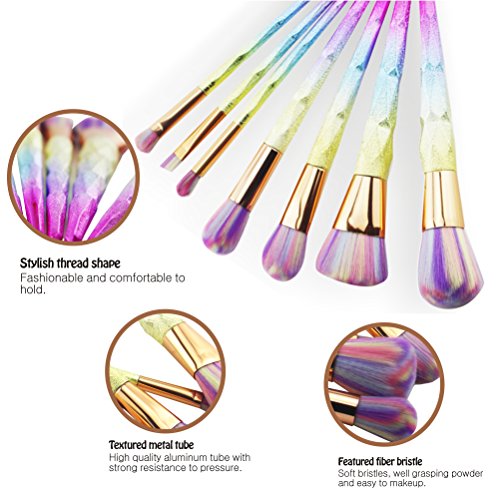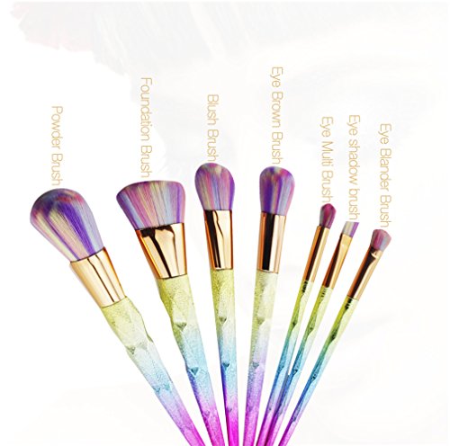 Makeup Brush Kit Cosmetics Set 3D Diamond Colorful Brushes Foundation Powder Cream Synthetic Bristles 7 Pcs with Cosmetics Bag