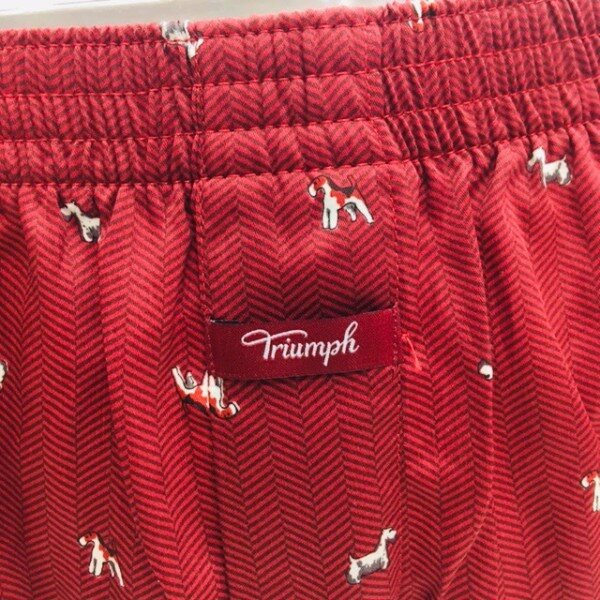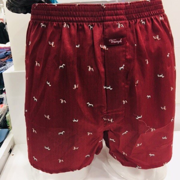 트라이엄프 남성 트렁크 팬티면100%, 80수 부드러운 감촉 와인컬러에 강아지 패턴 사이즈 95,100,105