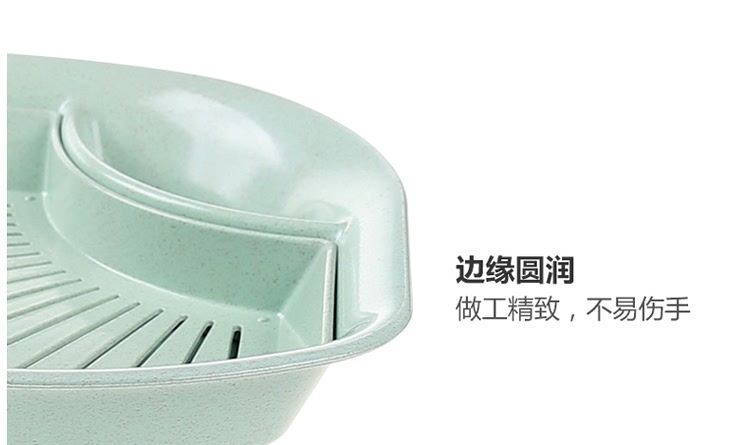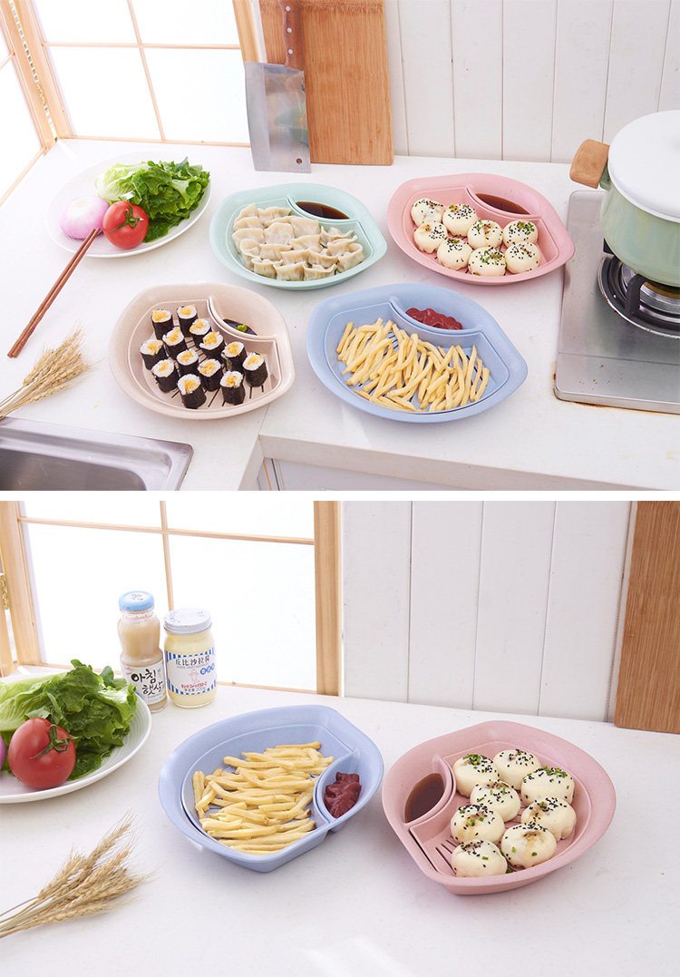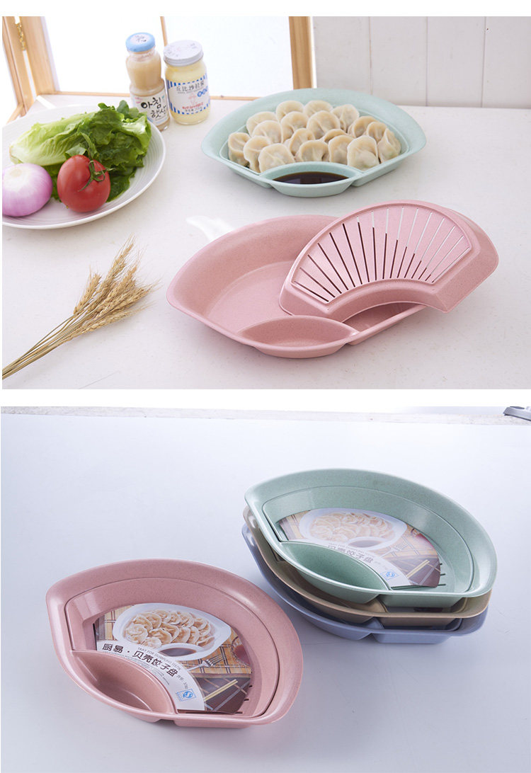 盘子餐盘小麦秸秆贝壳带醋碟饺子盘 双层可沥水水果盘菜盘家用盘