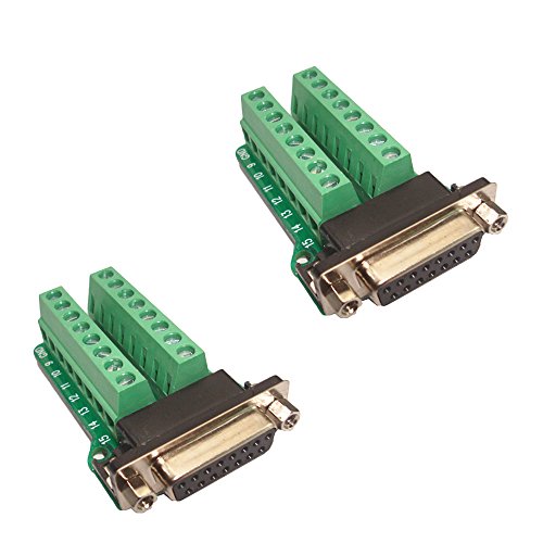 So-myshtech Connector Db15 D-sub Female Plug 15-pin Port 2 Row Terminal Breakout PCB Board(Pack of 2)
