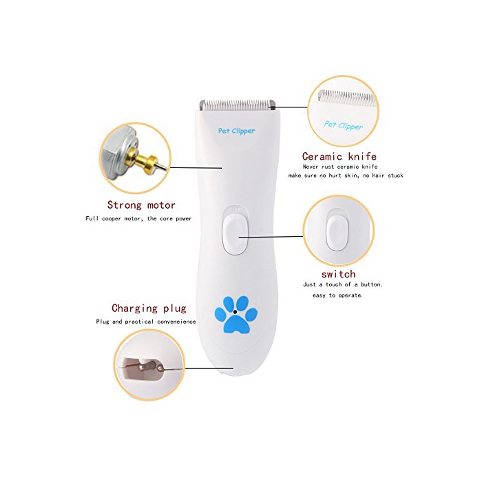 【안전성&충전】:블레이드의 앞의 부분은 둔하게 한 디자인,애완동물을 상처를 입힐 걱정지는 않습니다.전양표시 기능 첨부 오고, 충전식과 교류식2way 쓸만합니다.충전 전지:2.4V 600mAh 6.5W.전충전식에 내구성이 길다,파워 차저(Charger)는,spare 파트가 부속하며,사용하기 쉽다.