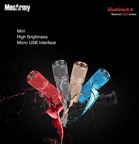 MecArmy Illuminex-4 Aluminum 130 Lumen Rechargeable Micro-Size LED Flashlight with Micro USB Quick Recharging (Grey)