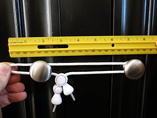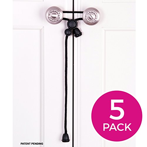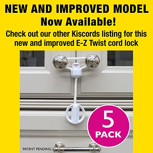 Kiscords baby safety locks are designed by a mom for moms. We are also proud to say that many of our products are assembled and packaged in the USA by people with disabilities. OTHER SAFETY DOOR LOCKS MAY DAMAGE YOUR CABINETS! Ever thought about what could happen to your expensive cabinets when you try to remove an adhesive from the door after 2-3 years? If it doesn't take the paint or finish off, you could be left with a permanent discoloration... And do you really want to use a drill? Our child safety latches install quickly and easily, with no drilling, adhesives or other tools needed. Plus, they won't scratch or damage your expensive cabinets. Kiscords ARE EXTREMELY EFFECTIVE AND EASY TO USE! Parents have been using them to childproof their cabinets for over 5 years with rave reviews. Give them a try and we guarantee you'll love them or your money back. See our demonstration video at "Kiscords" on YouTube. THEY CAN FIT KNOBS UP TO 6 1/2 INCHES APART depending on the diameter of the knobs. THESE CHILD CABINET LATCHES WORK ON KNOBS ONLY AND WILL NOT WORK ON STRAIGHT CLOSED LOOP HANDLES. Our child safety locks are designed for a specific purpose. We have found that trying to make something that works on everything, usually doesn't work good on anything. If you have cabinet doors with straight handles, check out our other product for that application. DON'T BEE FOOLED BY OTHER CHEAP AND UNSAFE IMITATIONS OF OUR CABINET LOCKS we are the Original cord-lock company. The locks they are selling are based off our first prototype before we improved the design and patented our double lock system. Their cabinet safety latches don't work. They don't lock and their small parts can come off and present serious choking hazard to your child. Please check it all out before making the mistake and purchasing our competitor's unsafe imitation of our latch.Feature
