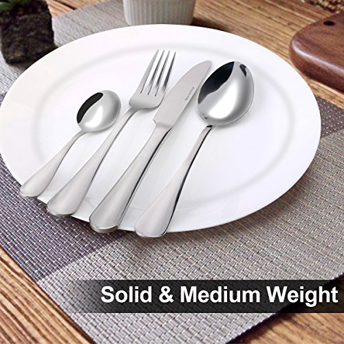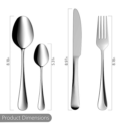 Dishwasher Safe and Durable -- Easy and safe to clean and dry the silverware sets without any residue in you dishwasher. Every single utensil has maintained its shape and function. None are bent.