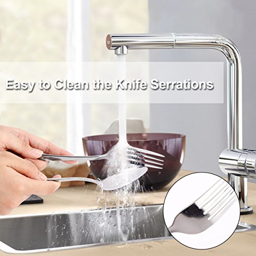 Solid and Rust-proof -- The Flatware Sets are made of high quality 420 stainless steel, even submerged underwater all night, with NO RUSTING, corrode or lose its shine.