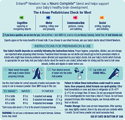 • Enfamil Newborn infant formula is tailored to meet the nutritional needs of babies through 3 months.